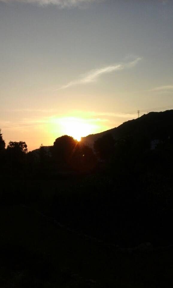 过了一会儿,太阳的光度减弱了,不那么刺眼。看!周围的天空被映红了,好似给云朵镶上了一道金边。草木、房屋、小路都涂上了一层朦胧的色彩,天空便成了最吸引人的东西了,仿佛是挂在天空的一幅油画。