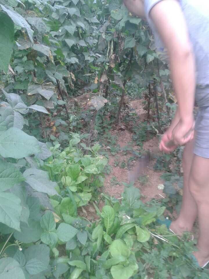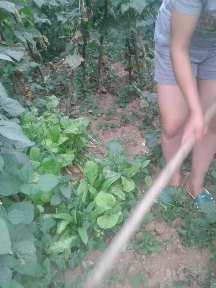 妈妈开始除草了,拿起旁边的锄头,三下两下就把那边没用的杂草除掉了。看上去很轻松,但我还是不敢尝试。