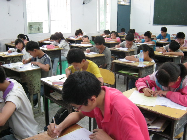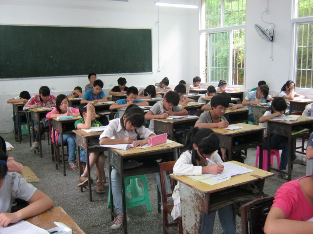 看,这里就是神圣的"803"考场,是我们考试答题的地方,监考老师像木偶一样站在考室前后,眼睛像鹰眼一样锐利的注视着我们,我们的一举一动都可要小心哟,不然就会得到老师的批评。这更让一些居心叵测的同学胆寒。"叮铃铃,叮铃铃"答题铃声响起,我们开始了答题。
