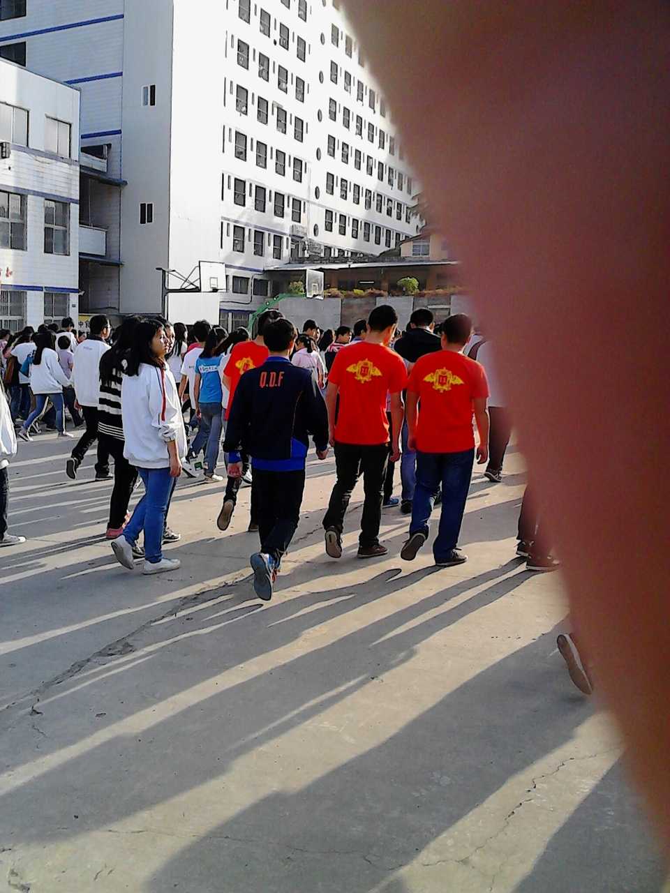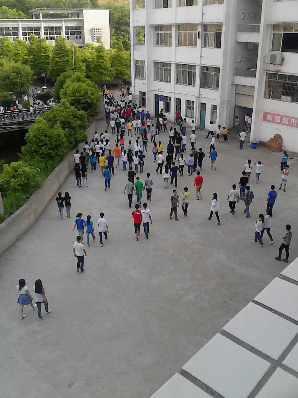 在每周星期一的早上,如果没有天气影响,我们都例行举行晨会,今天刚好是星期一,所以我们在班级集合清点人数后,再由班主任带领集合,因为时间很短,所以就比较急,同学们就很快的下到了楼下面准备到操场集合。