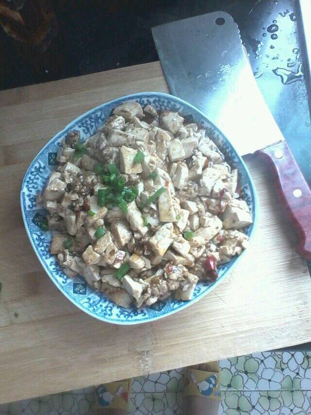 等豆腐熟后,抓少量淀粉调稀,均匀倒入锅中(这也叫勾芡)。然后翻炒几下,就可以出锅了,把豆腐装入盘子后,在上面洒满葱末,就可以上桌啦!这样,一盘香喷喷的麻婆豆腐就完成了。