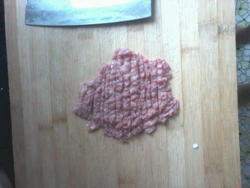 在锅中加入适量的盐,让豆腐在锅中煮6~7分钟,使其入味。6~7分钟后,把豆腐装入漏盆中,把水漏干和冷却。在准备一小块肉,把肉剁碎,在肉末中加入少量鸡精调味。(可加少量淀粉)。