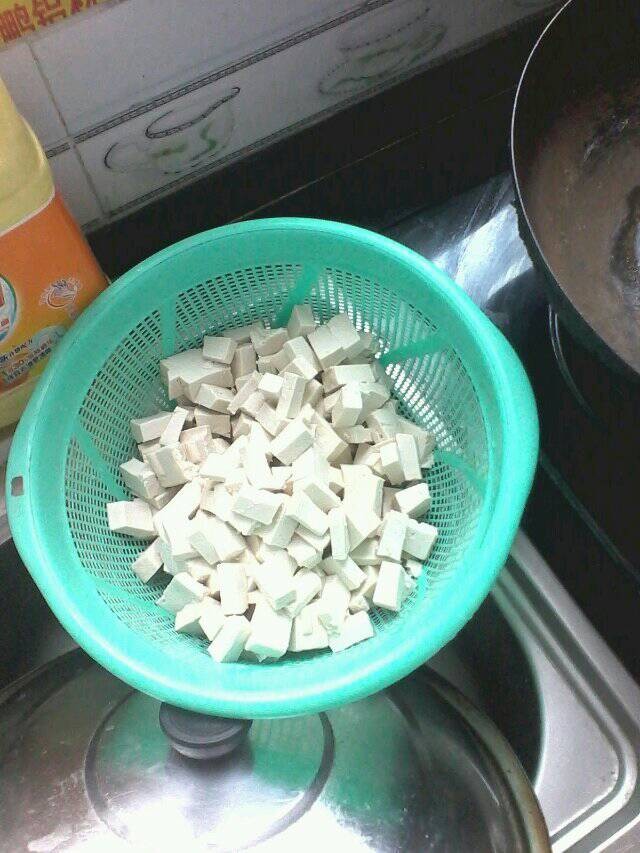 这几天,妈妈回老家栽秧了,我这几天都是一个人做饭。我准备做麻婆豆腐,首先把豆腐洗净,在切成一小块一小块,包锅里装入二分之一的水,等水烧开后,再把切好的豆腐放入锅中,加大火力。