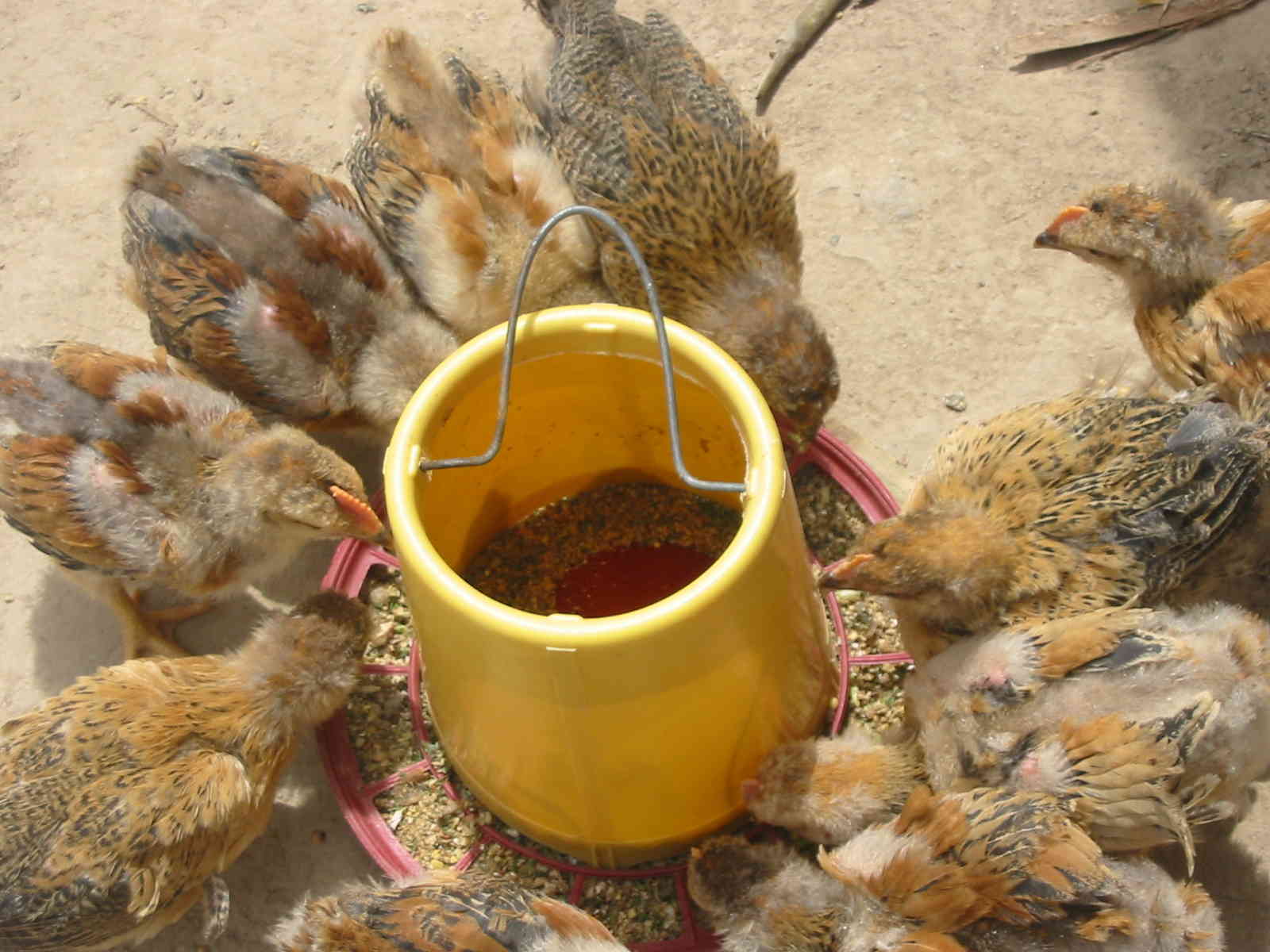 这是我家的小鸡,你看它们在争先恐后的抢着吃食,那个食盒是妈妈自己亲手做的。