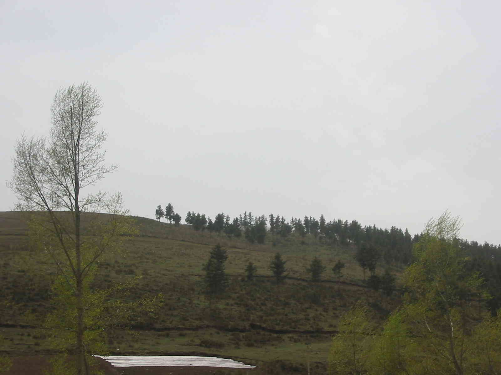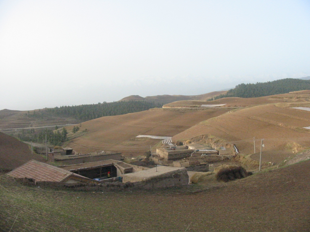 太阳刚刚升起,山村也显得更加美丽,远出的山蒙胧发亮,这儿是西北日出最早的地方