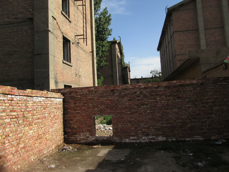 好心的社区砌了砖墙以防止人们进去以防万一,但是破坏分子又在砖墙的上掏了一个大洞,原来他们去偷里面的废东西。