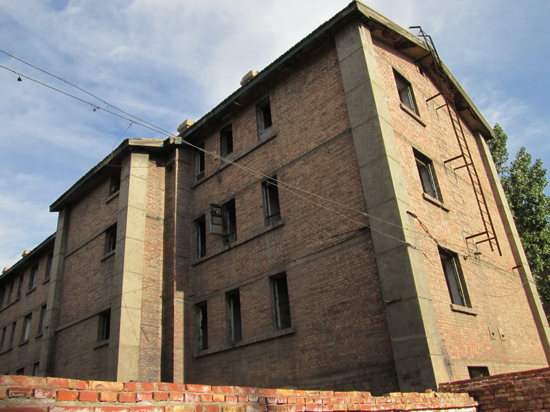 在红古区海石湾火车站对面南区三号,曾经是兰州碳素厂建厂时期所建的家属楼,厂子倒闭已经好几年了,家属楼成了破楼、危楼了,没有人居住,但是任然矗立在火车站的对面。