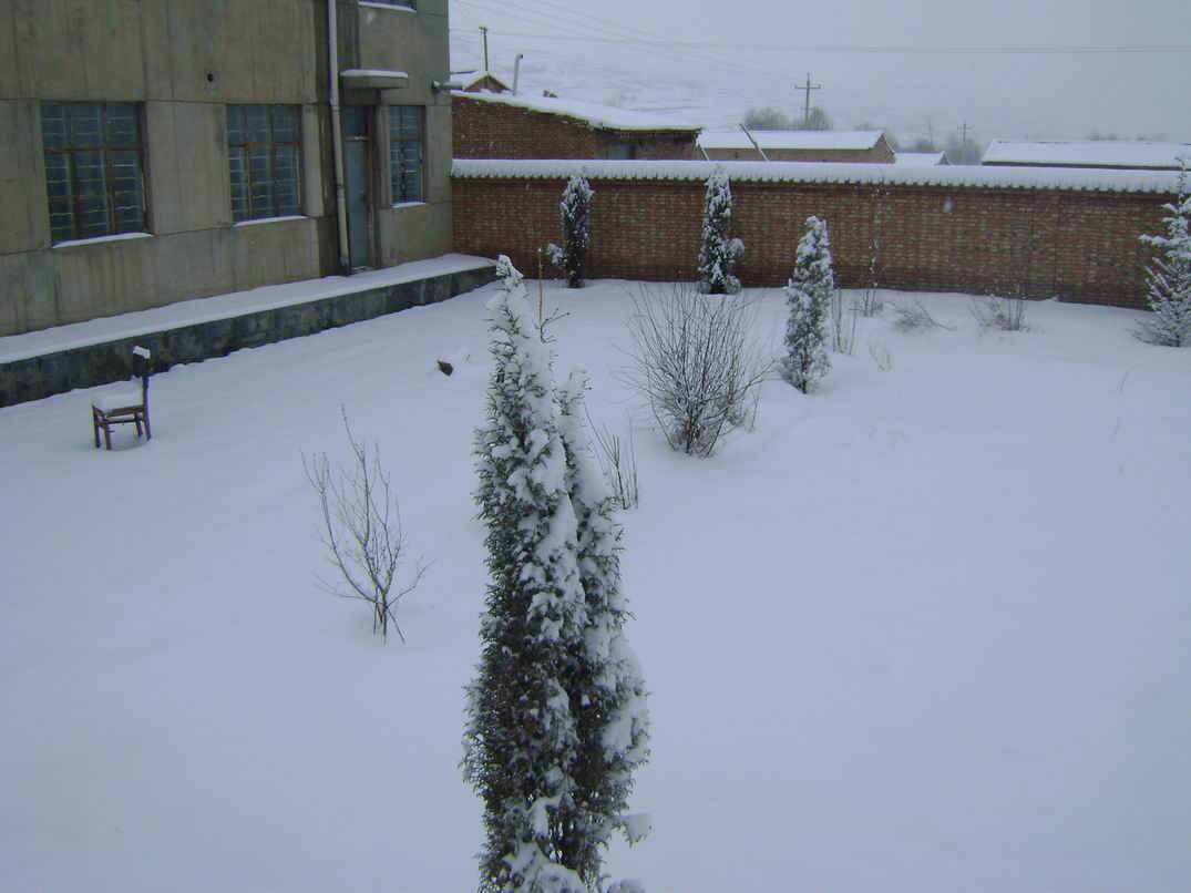 雪越下越大,纷纷扬扬,好像棉花、恰是鹅毛,一片片、一朵朵,遮住你的双眼,可乘你不注意时它又钻进你的脖颈,感到冰冷冷的。当你伸手去捉它的时候,它又神秘地消失不见了。我和马燕小心地走着,脚下发出"嘎吱嘎吱"的声音,身后留下了一个个深深的脚印。这时马艳一不小心"扑通"一声摔了个屁墩,可她还"哈哈"大笑起来,逗得我也笑了起来。