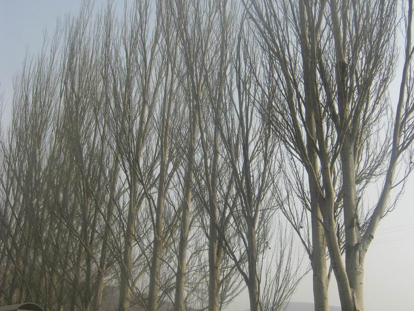 早晨,我背着书包慢慢走进校园,来到操场上第一眼看见的是,一棵棵整齐的白杨树。它们高高的的挺立在操场边缘,那长长的的枝干光秃秃的,枝干上的叶子也已经随着深秋的到来,飘落到了大地母亲的怀抱,金黄的一片,好像给校园铺上了一片地毯。