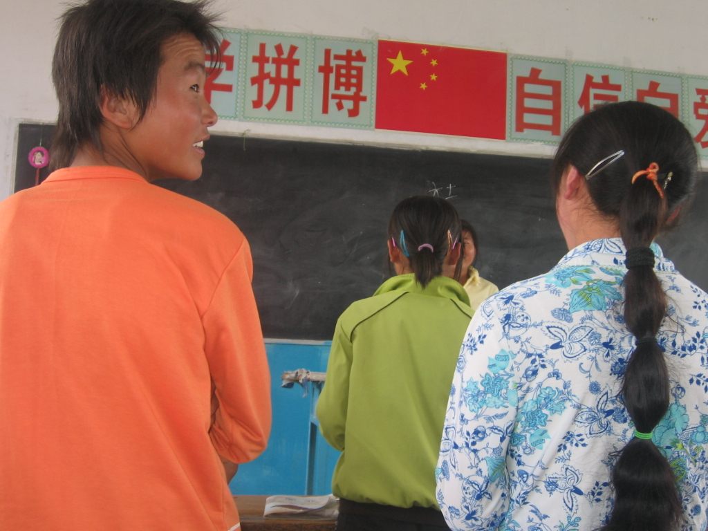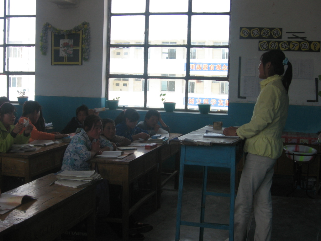 我们开始上课,老师不停的用粉笔在黑板上刷刷地写着,讲着,打开课本教我们读单词,读录音材料,我呆呆望着老师头上的几根白发在发呆,被老师发现了,大声地问:"喂,马金莲,你在干什么,上课不听讲,胡思乱想什么"老师的一句话惊醒了我。