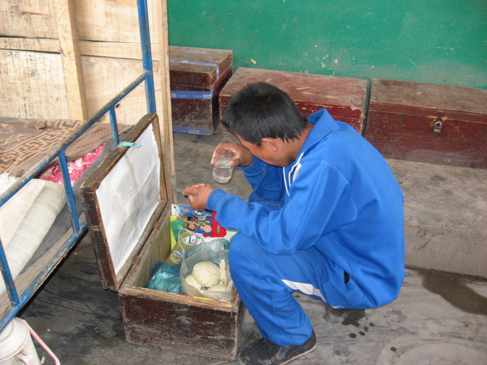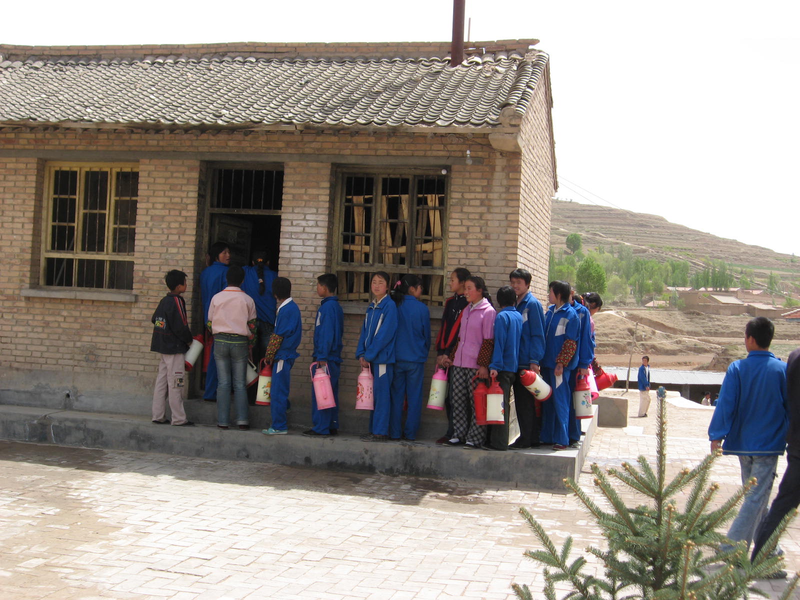下午,好多学生为了节省伙食费,他们只能中午吃一顿饭,下午吃一些干馍馍,喝一点没烧开的水,这样就算是我们的晚餐吧!然后我们就要去打没烧开的温水来喝。