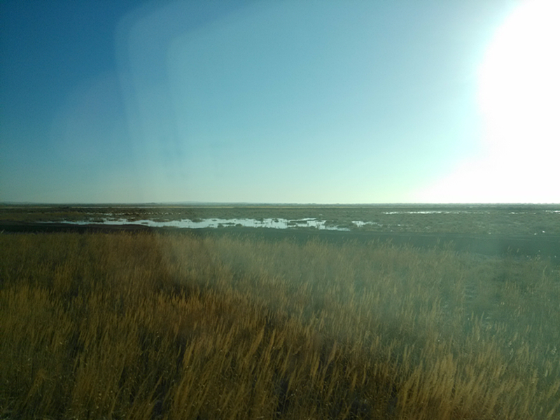 随着汽车不断向前,终于看见了青土湖的水! 水域在慢慢延伸、扩大,差不多有几十公里绵延不断。经过民勤人民的不断努力,终于让我们看到了保护水域,保护生态环境的重要性,看到了民勤不让沙漠吞没的希望。