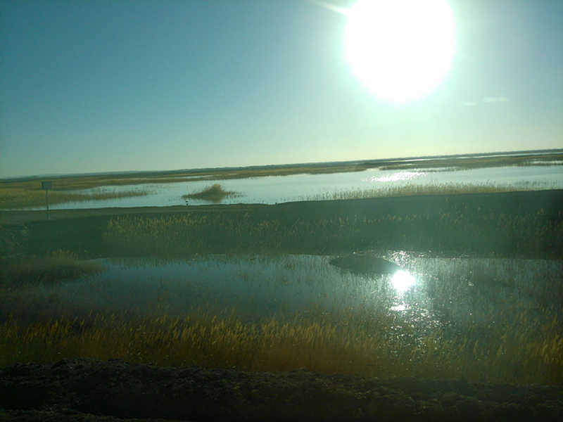 终于,我被眼前的巨大水域惊呆了。 我几乎觉得这是不可思议的,因为眼前的水域大得已超出了我的预先对青土湖的想象,我几乎看到了水天相连的大湖,边上都是茂盛的芦苇,汽车的马达声还惊起了一群野鸭,不禁让我想象起三百年前波光粼粼的景象。 青土湖,您让我有了改变环境的憧憬,您让我有了保护环境的希望!