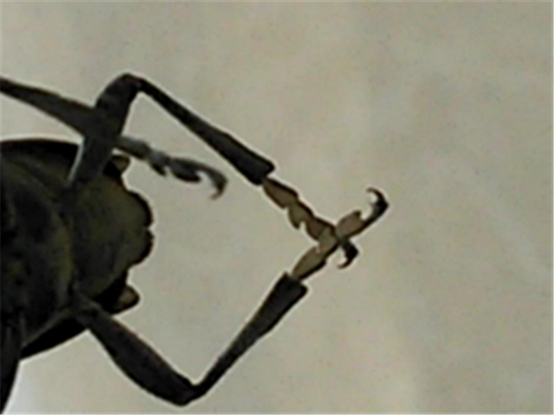 特别是足尖有非常锐利的"钩子"。因此,天牛的爬行、攀援时显得非常稳健。而且你要把天牛从地上抓起来也要使点力才能挣脱它锋利的爪力。