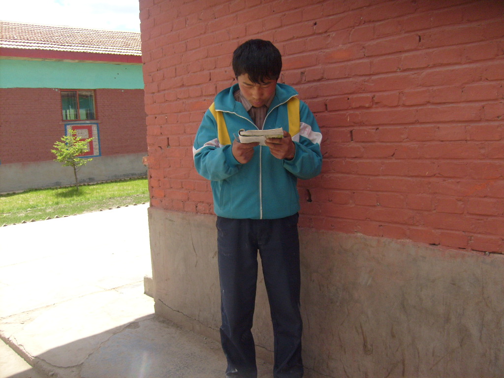 他,长着一张黑黝黝的脸,理着一个平头,虽相貌平平,却有着非凡的毅力和不同凡响的志向。他每天以神龙见首不见尾之速出没在教室内外,你想知道为什么吗?告诉你,他又在找时间准备背书了。