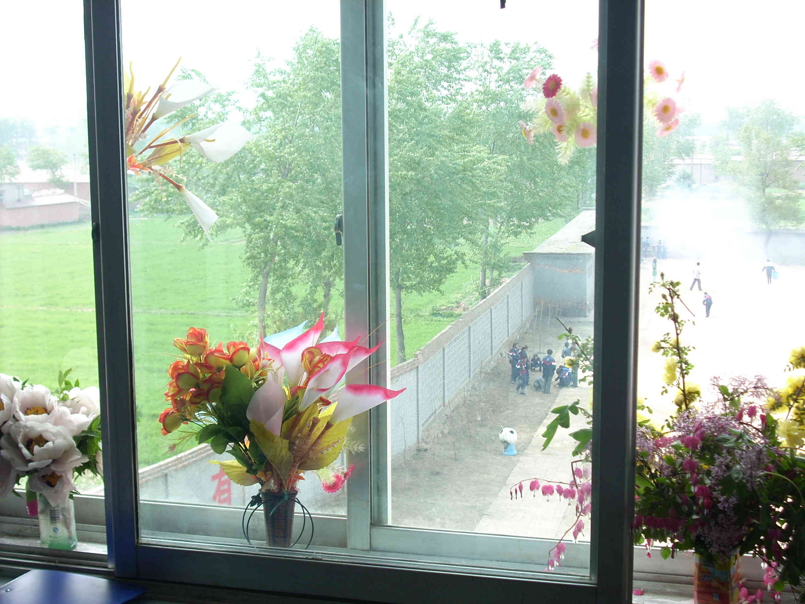 学习累了,猛一抬头,便可以看见五彩缤纷的世界,绿中隐青的花,深红的漂亮的苹果花,梨花,杏花都开了,小朋友们高兴的在草地上嬉戏。