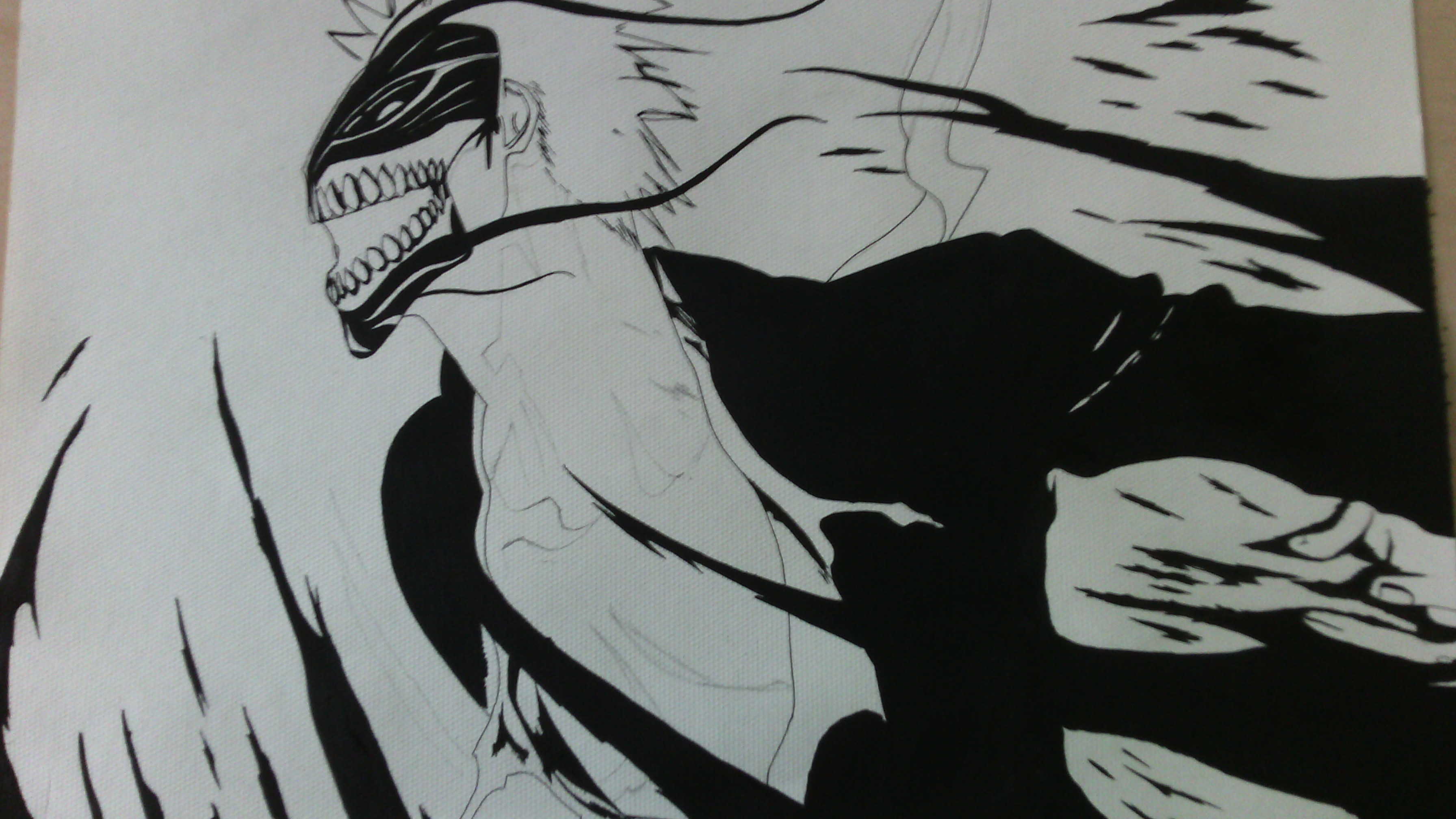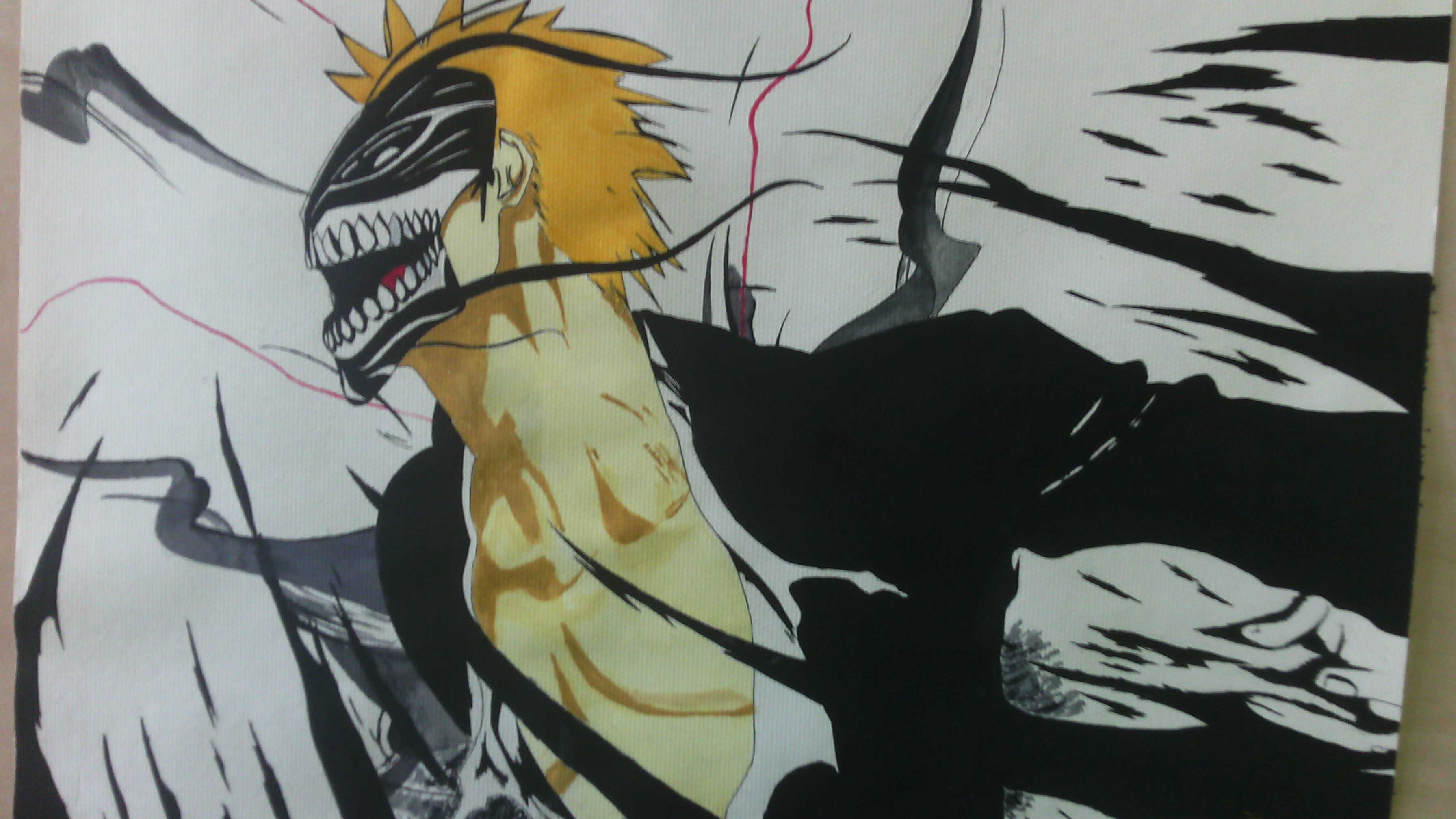 这是我六月份的一幅作品,作品完成后对我的感染力很大。作品中的主人公还是我最喜欢的——黑骑一护。 准确的来说作品完成后的效果超出了我的预料,有可能我被一护那永不放弃、不轻言放弃、挣脱的姿态深深感染到了吧。而画中的一护是因极度悲痛而产生的"虚化",这相当于动漫中暴走的设定。 总的来说作品的色彩结构虽然并不复杂,但刻画的效果却十分的吸人眼球。
