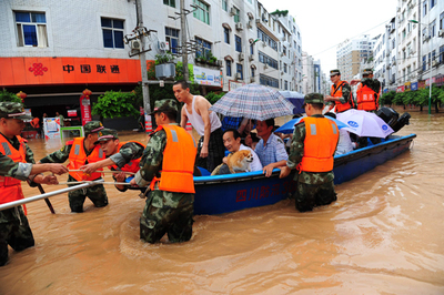 就在这个紧要关头,从老远的地方赶来的救援消防官兵叔叔们来了,他们带着救生船和一系列救生工具来了。大家的心也松了半截,紧接着他们一部分人疏散群众,另一部分人带着救生船去搜救。不一会儿,已经有一家人被救了出来,消防叔叔们把他们背到安全的地方。被救出来的人越来越多,连被困的小狗狗也被救了。所有的人终于都安全了,可他们还在忙,忙着帮人们把漂浮在水面的东西给捞起来,减少损失。