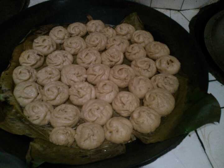 就这样忙了半天,包子也终于包完。但最重要的是"芭蕉叶"用它来垫包子,用它也可以使包子更香,淡淡的清香味;最后就等待着它们的是在锅里蒸,在短短的二十分钟后,就味道一股包子和芭蕉叶的香味,陷也随欲而出,而我却早已迫不及待了。