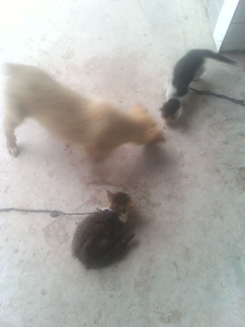 综上所述,我比较喜欢呼呼和咪咪。每天早晨我打开厨房门,总会看见它俩,呼呼卧在柴草上,咪咪趴在它身上,睡眼朦胧,那模样要有多可爱就有多可爱。呼呼some times是很讲义气的。咪咪一开始是被拴着的,但呼呼总是帮咪咪去咬那绳子,后来,如你所想的断了,我无语——奶奶后来也就不打算拴着咪咪了,也就是说咪咪的自由是呼呼所赐的。每天我烧饭的时候,它俩总会蜷在我身旁。有时候,我会丢一两片肉给它们吃,看它们狼吞虎咽的样子,活脱脱像一个星期没吃饭似的。