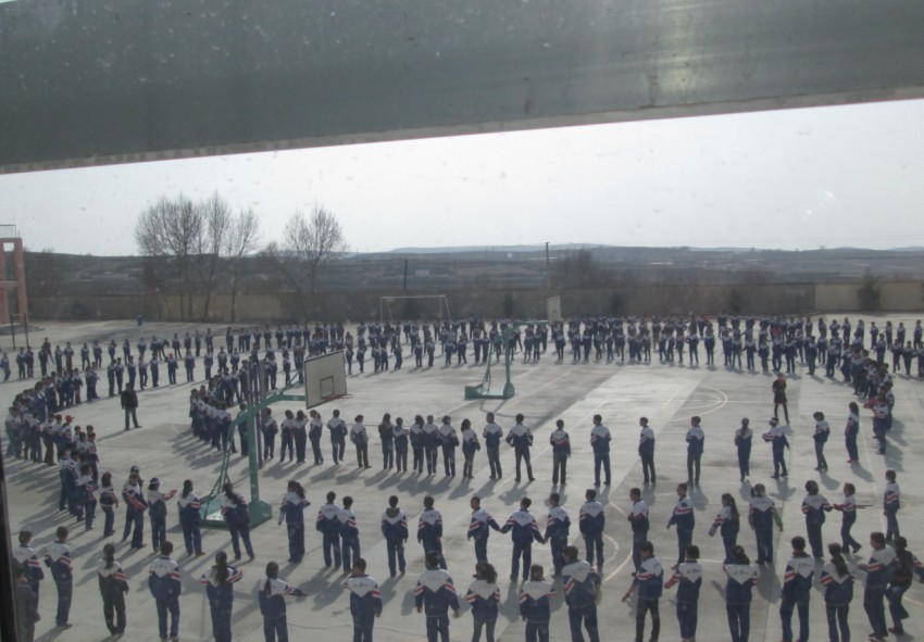 早晨两节课后,我们早已有些疲惫。这是恰巧到了大课间的时候,大家舒展着自己的双臂,蹦跳在操场上。一声哨声,大家集合在了一起,阳光体育歌的声音响遍整个学校,它带给大家欢乐,时间在大家的欢乐中流逝。一会,音乐响起了,同学们变换了队形,跳着兔子舞,围成了三个大圆圈。