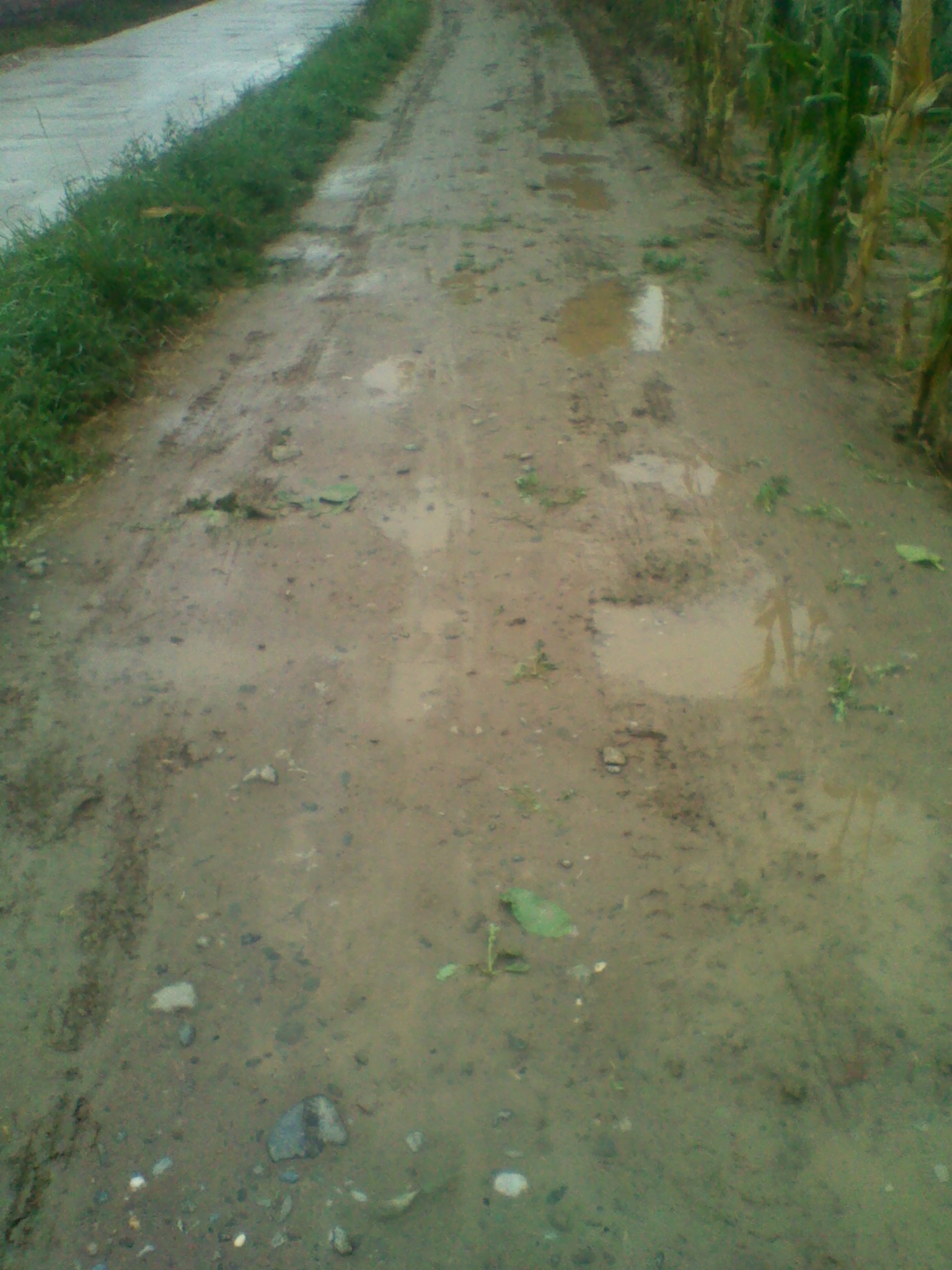 回想以前的路,以前的那条土路是坑坑洼洼、凹凸不平的,尤其在夏天、秋天,雨水较多的时候,那条路可谓是惨不忍睹了,整条路上都是泥,人根本不能在这条路上走,若走上去,那么鞋子上,裤脚上都会是泥巴。冬天的时候虽然路上没有泥土,可是路上有冰块,人走在冰路上都是小心翼翼的,稍不留神就会摔倒。正因为有这样的路,所以卖蔬菜的车都不来我们村了,亲朋好友们都怕这条路,没有重要的事不来串门。这样的路使我们出门也不方便。唉,想想那条路,就觉得可怕。
