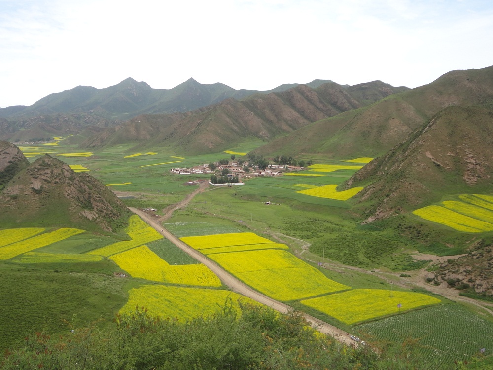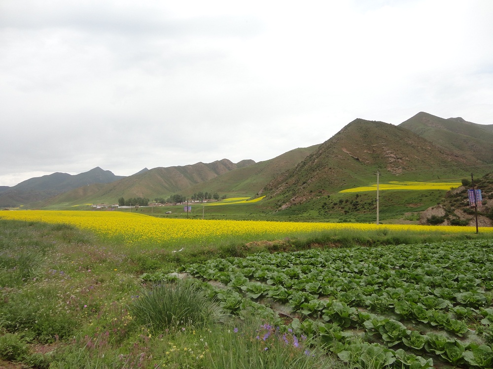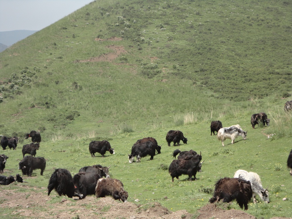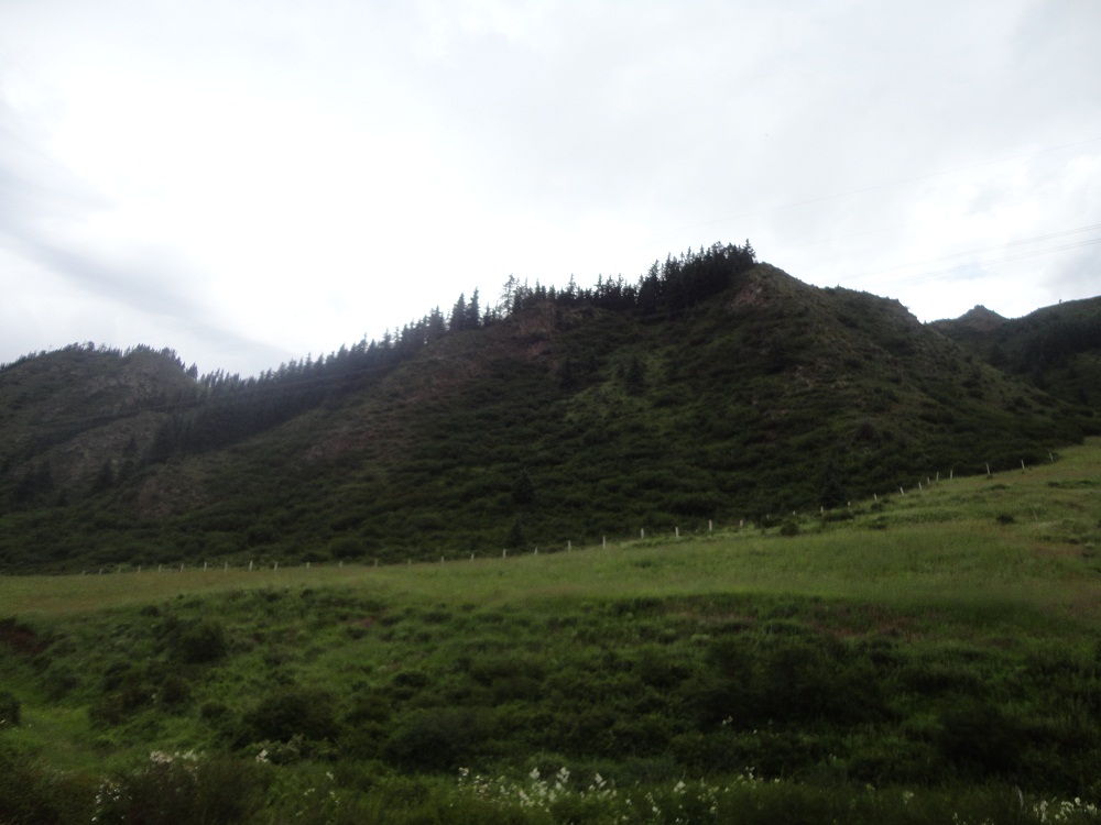 再往里走,地形便由平川过渡成了连绵起伏的山。这里的山不是特别高,阳面长满了灌木丛,阴面是高大的松树,这对常年干旱的西北来说,真是稀奇。山坡上霸气十足的高原牦牛不停的跑来跑去,温顺的绵羊悠闲的吃着草。这里人家不多,房子很漂亮,感觉很温馨。从四面八方赶来休闲的人们,在草丛中烤着自制的烧烤、煮着就地宰杀的羊肉,喝着牦牛酸奶,呼吸着新鲜的空气……