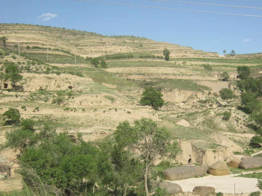 这些山南北紧紧相连,大小不一,最北面的山最大,传说以前这儿还住过土地仙呢!现在山头上还可以望见白灰呢!中间的几座山最小,可是山上的树林却最多,远远望去满眼都是青葱的白杨林。但山上却有几块大石头,就像爷爷的头顶一般,光秃秃的。最南边的山头,却是截然不同,树林已被砍伐,只有零零碎碎的杂草依然生长着。
