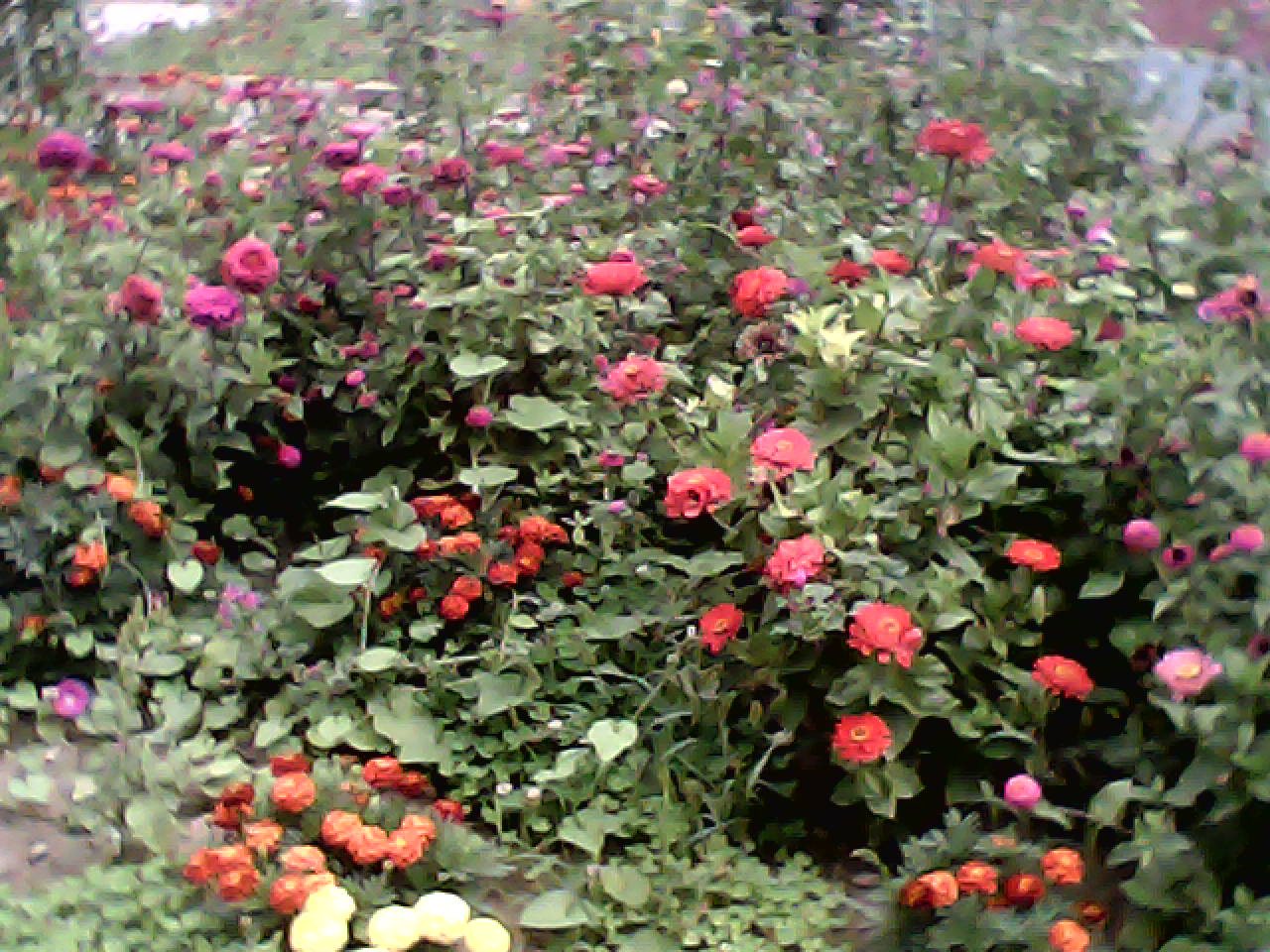 这虽然中秋了,天气也凉了,但是这千层菊,它们竞相开放,争奇斗艳,真是"红的像为,粉的像霞";一个个高昂着头,好像我们班的学生一样端坐在那里,好像在专心听老师讲课呢!