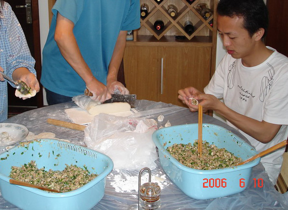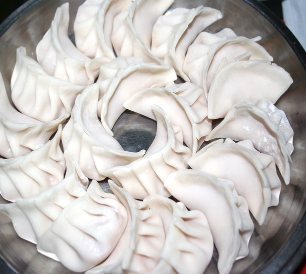 现在,母亲开始揉面,母亲从面袋里取了两碗面,放在面板上,在中间挖了一个圆圈,在面粉上放了一撮碱,在水瓢里到了一点水,开始揉面,母亲力道大,揉的面很精。母亲把锅放在火炉上,倒入少量的水,等到汤水开了,就可以下水饺。现在,我们全家开始包水饺,母亲的手艺好,那是左邻右舍众人所知的事,而在这之中,又以包水饺最拿手,看着母亲娴熟的动作,实在令我敬佩万分,我立即要求母亲让我擀面皮,母亲答应了我的请求,于是我在厨房买力的擀面皮,但我怎么擀都擀不好,最终,还是让给妈妈擀,饺子全部包完了,面板上摆满了琳琅满目的水饺。