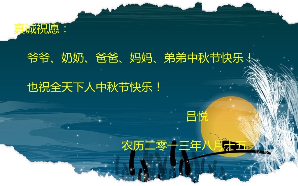 这个中秋节虽然没有月亮,我们当然也没看到月亮,都是这该死的天气破坏了我的好心情。但是我们家玩的还是很高兴的。这个没有月亮的中秋节让我终身难忘!
