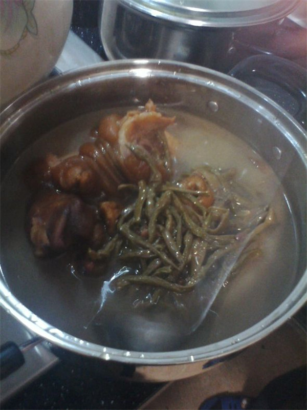 到了春二月,用腊猪脚炖干豇豆,再加一点牛皮菜帮,是一道家乡的风味大餐,想品其中的美味,就来我的家乡做客吧!