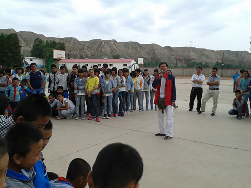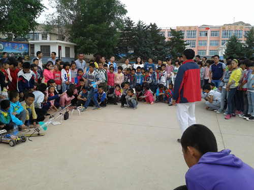 可是谁也没想到这个梦想今天就实现了,帮助我们实现这个梦想的是兰州的一个航模队,他们给我们带来了模型汽车和模型飞机。