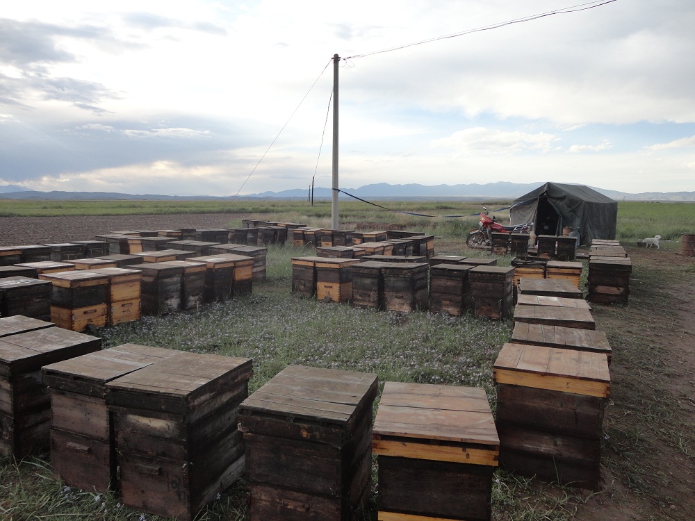 每年夏末秋初,蜂匠们都会大批驻扎在田边,可能是因为我们这里比较冷吧,花开得比较迟,花期较短,所以蜂匠们一路从南边到了我们这里,但很快就会回去,这里是他们一年中的最后一处临时驻扎点。