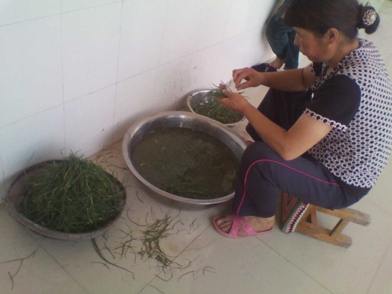 腌制沙葱其实挺简单的。首先要把沙葱采摘干净,把枯黄的地方摘掉,再把老的沙葱扔掉,只留下嫩的。摘干净之后,在水里洗两三遍,因为沙葱生长在土里,终日风吹日晒,所以里面有好多土尘。