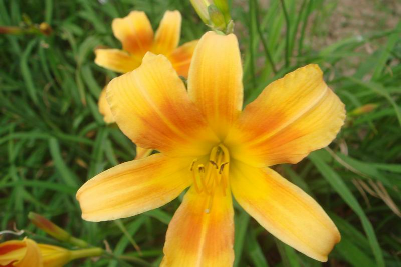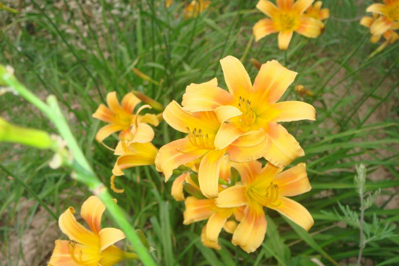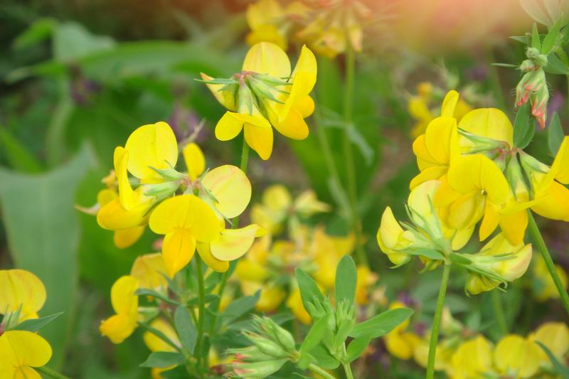 看,这是另一种花,它也漂亮吧?翠绿耀眼的叶片衬着黄色的花,花瓣一片一片的簇拥再一起真像一朵彩色的云。簇鼻闻一闻,恩,真香呀,风儿一吹,香味四处弥漫,使人神清气爽。