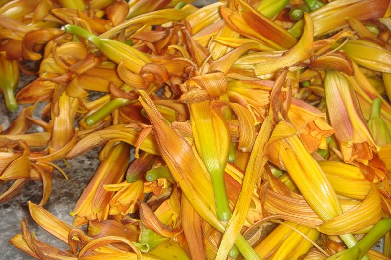 看,这便是采摘好的金枝花,采摘的方法特别的简单,只是把一只手放在金枝花的尾端,另一只手放在花枝上,然后,轻轻的一掰就掉了,简单吧!金枝花吃的时候,只要将它洗净就可以,不用再切,简单吧。