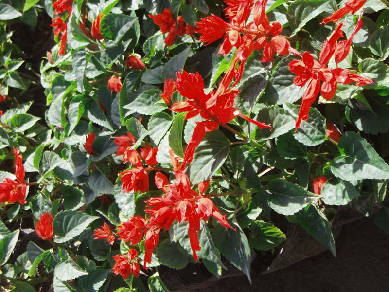一串红 别名墙下红,唇形科草本植物,作一年生栽培,茎基部多木质化。暖、湿润、阳光充足的环境。