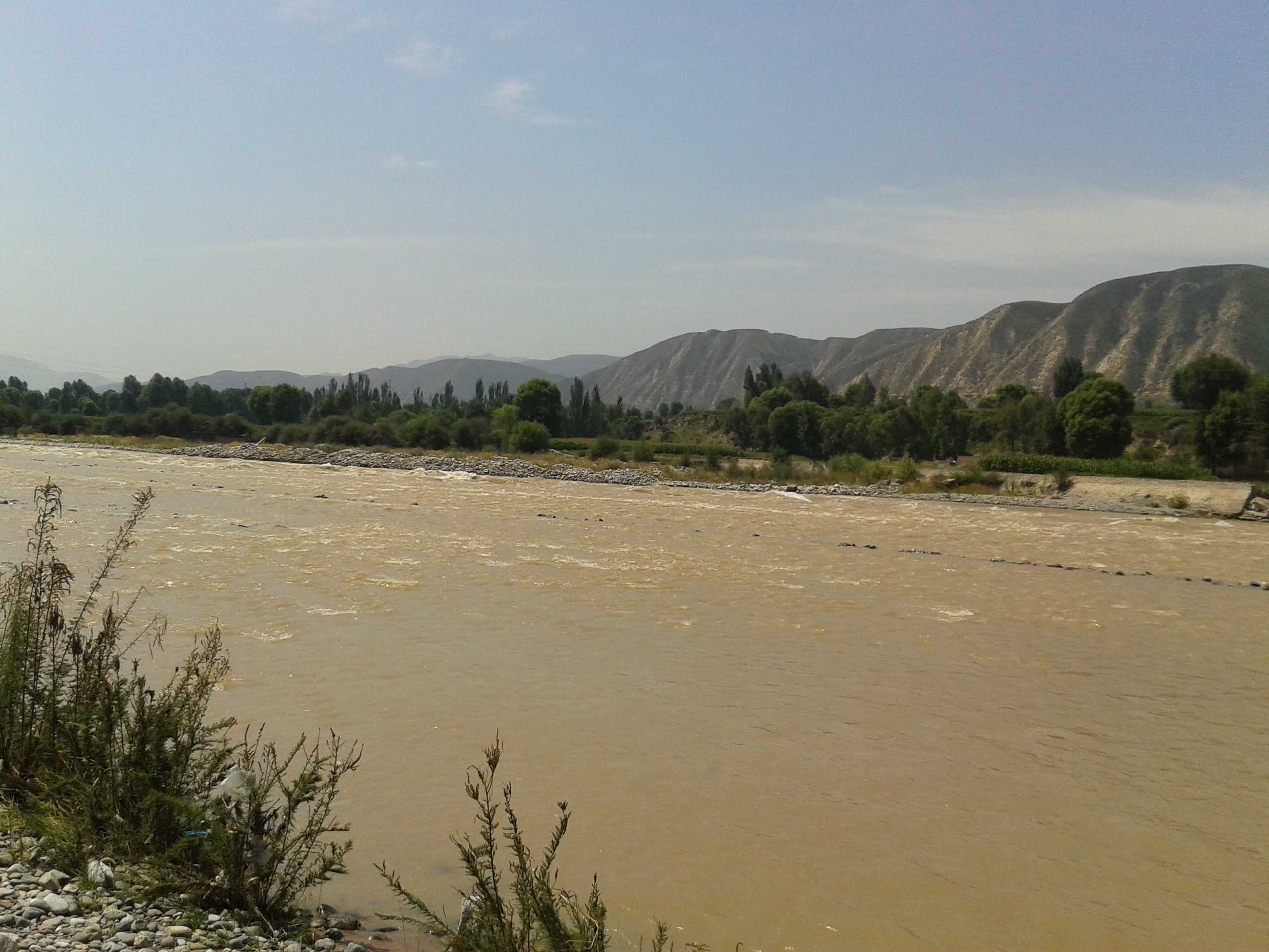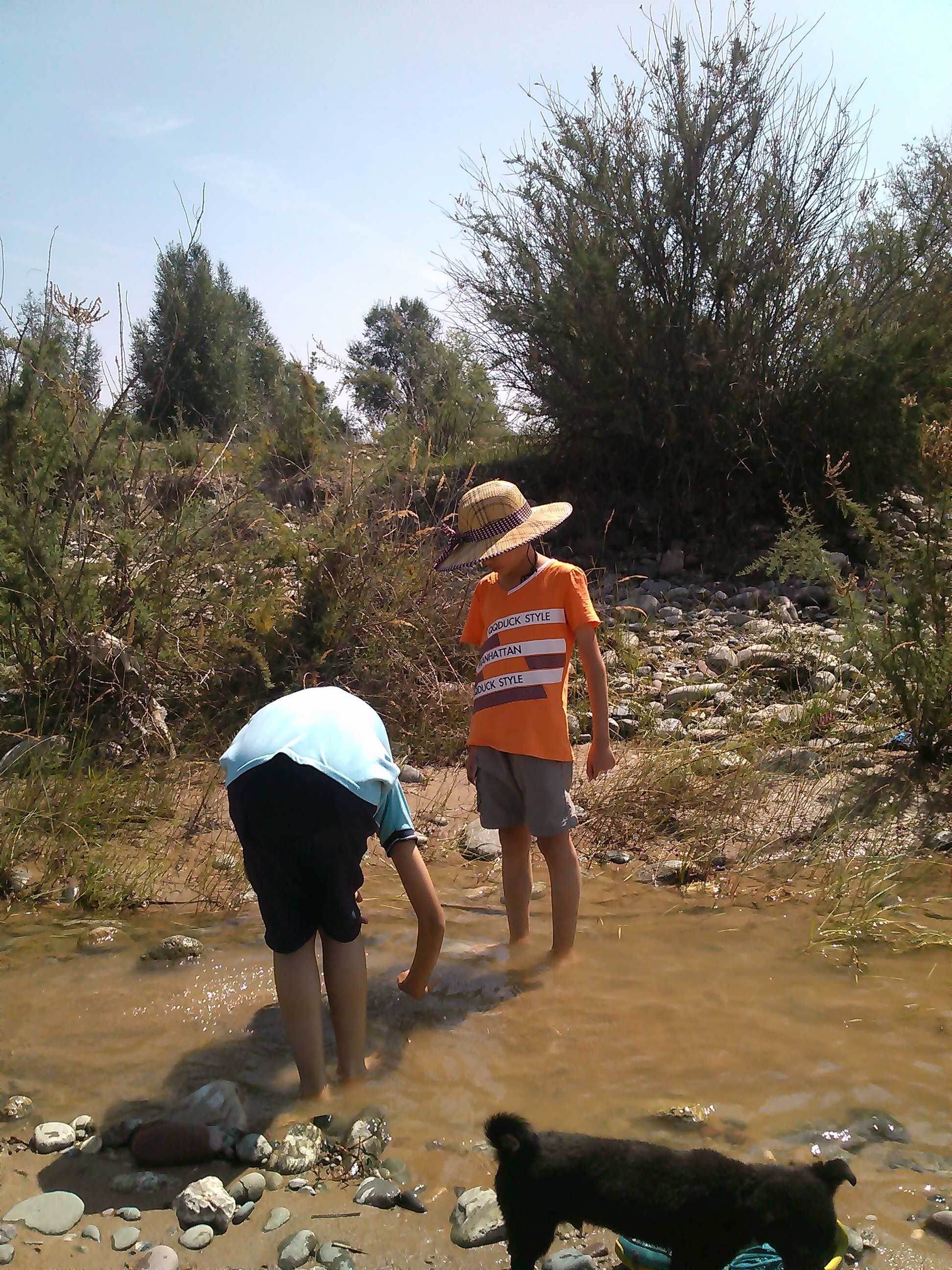 我们从十点出发,也就半个小时吧,就到了大通河边。一到大通河边,首先映入眼帘的是那浊黄的河水和岸边的石头。黑子一见到河水,就往一小滩河水跑去,跑过去,马上掉头向我们跑来,来来去去,毫不厌烦。