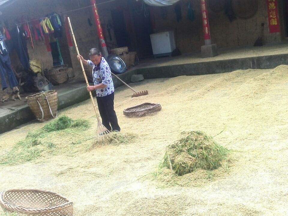 周五放假的时候我走在村道路上,一路上都听到都是打谷机响起的声音。