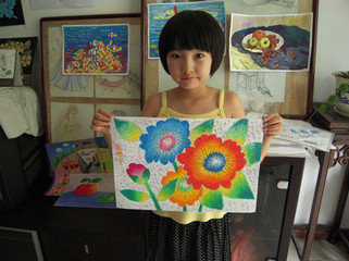 结束后,我和朋友了来到楼上的美术中心参观,不同年级的美术作品都有着不同的风格。小学生的绘画总是围绕着卡通动漫,展现的是虚拟世界。而中学生的作品更注重写实,人物肖像栩栩如生,外貌、神态表现的淋漓尽致,山水画每一笔十分到位,时重时轻,层次感十足。当然,还有许多工艺品。废弃的酒瓶用不同的颜料上色后,按照颜色的不同顺着墙脚排列。吃完的开心果用彩笔涂上颜色,打一个小孔,再细线串起,一串五彩的风铃就制成了。风一吹,墙顶上就奏起了交响曲。房间里学习绘画的同学各个都是全神贯注,有的埋头修改了自己的作品。有的聚精会神地盯着前面的模型。我们为了不打扰别人上课,就匆匆离开了。