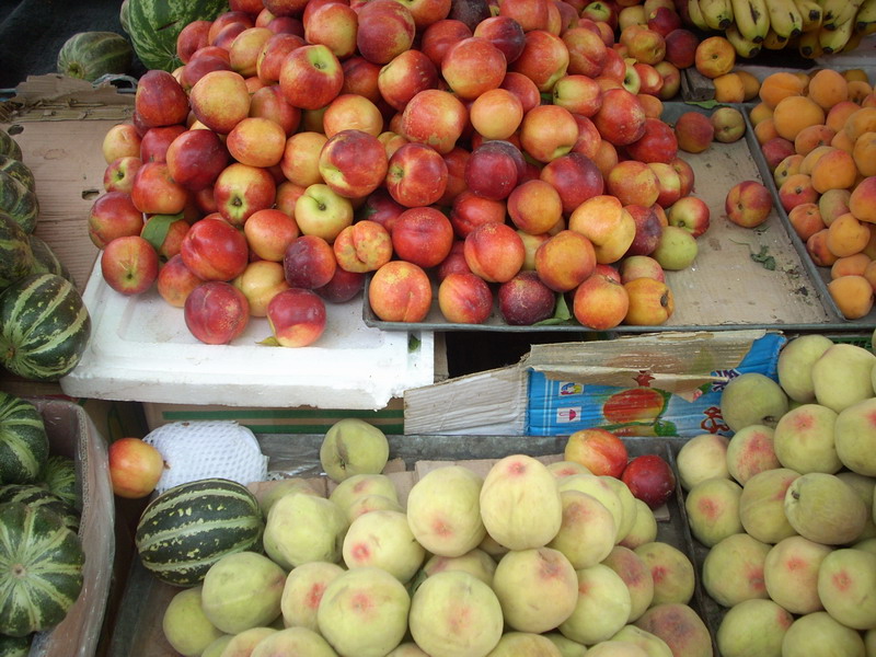 还有毛桃和油桃,它们一般大小。只不过毛桃的表皮上有小小的毛,而油桃的表皮是光滑的。至于哪个好吃我也不好说,因为人各有所好。