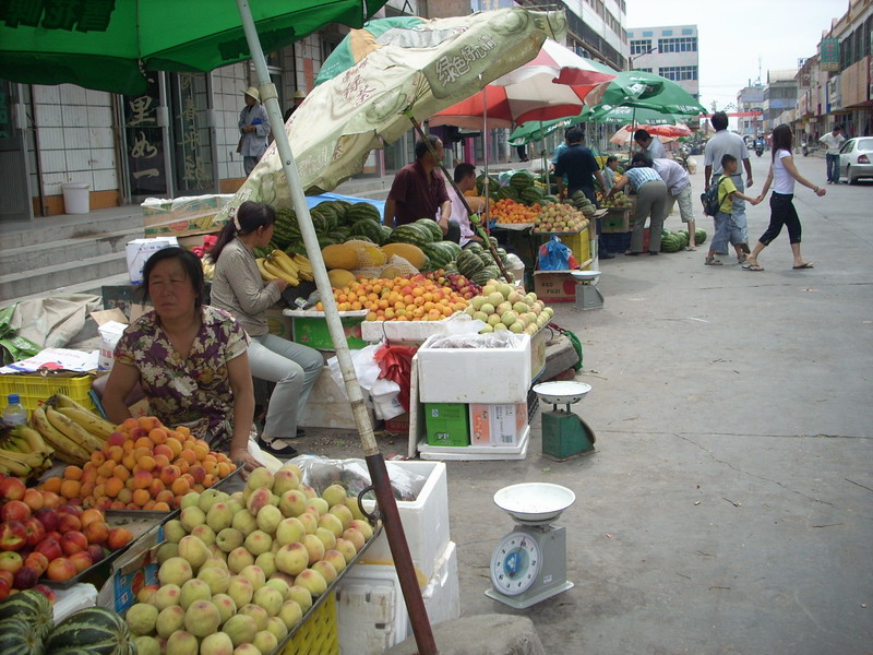 瞧,这里的摆满了水果摊,水果的香味四处弥漫,使得我垂涎三尺了。