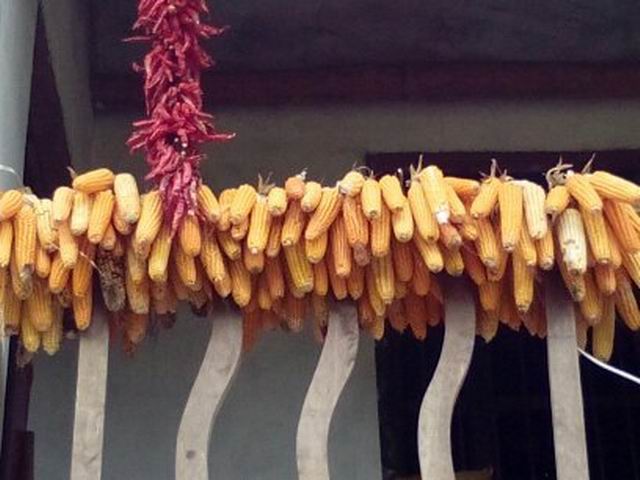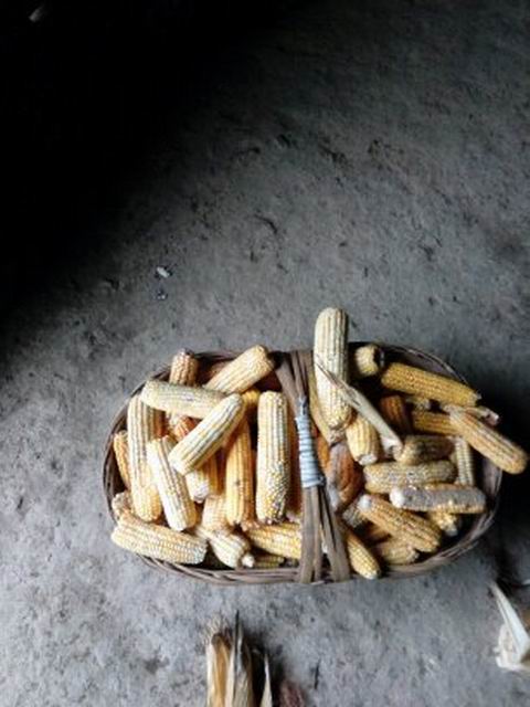 这些大叔们个个干活精干麻利。砍到玉米杆,堆成竖型,砍了一会儿,就把堆好的玉米搬下来放入背篼,分工明确,另一个人把玉米棒子往家中运输,只需一天,遍地成熟的玉米就收割完毕。农村里都是互相帮助来播种和收获的,这样,人们的关系就会更加友好团结。掰得这些玉米,堆成小土堆状,过段时间后将它悬挂在通风处,在需要时将它磨成玉米面。