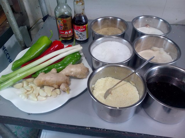 做法 第一步:切肉。顺着肋骨中间的肉要一条一条的切开,然后将每条肋骨剁成每截大约五厘米左右。肉一斤左右就可以了不要太多,因为是生炒,肉太多会夹生,不但会影响口味而且也不利健康。 第二步:准备调味品(基本调味品就不用说了吧)浓缩鸡汁,花椒油少许。 第三步:佐料。蒜,切成薄片。生姜,剁碎加水浸泡。葱,直接切成大约三厘米左右的段。辣椒,红和绿色的各切成长方形。 准备到这里已经差不多就可以了。