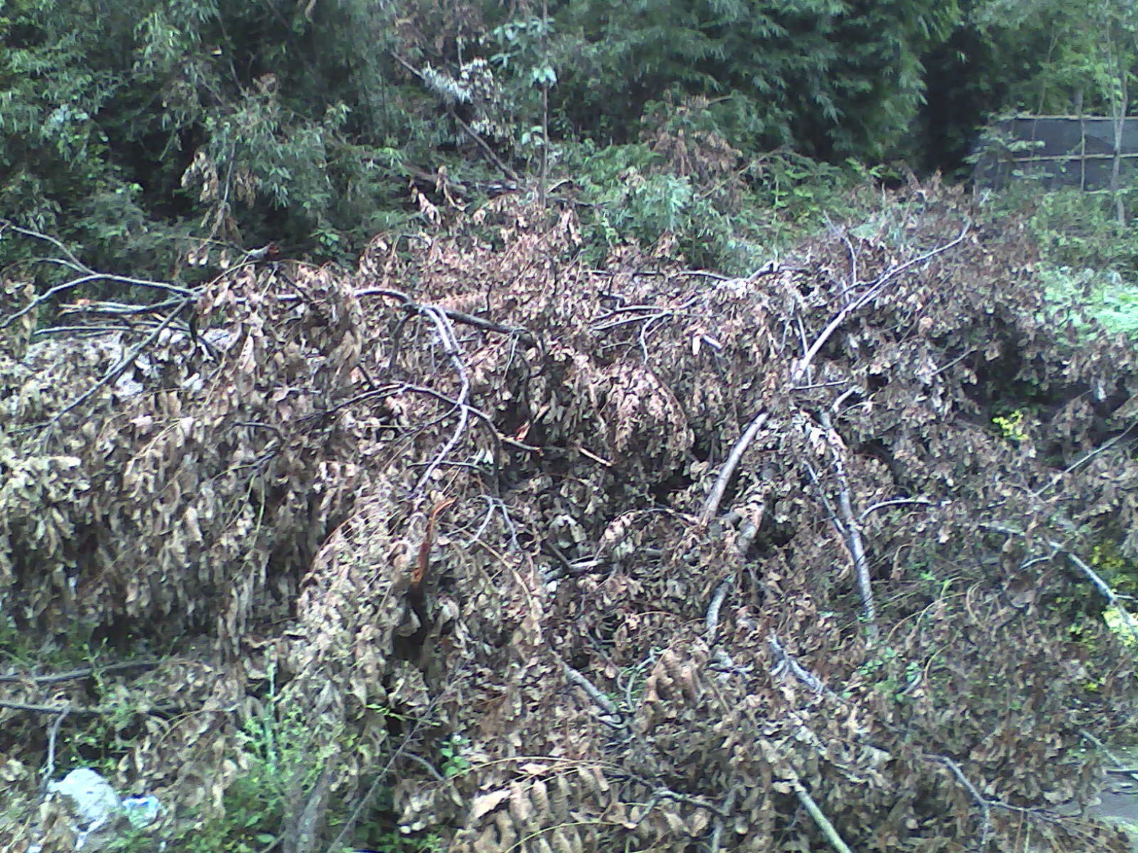 残枝落叶这些一堆一堆枯黄的树叶,是那棵树砍掉后留下的东西。虽然是破东西一堆,我知道,如果我是这样的一棵树就这样被人类砍掉,我不甘心。好似这样一堆不起眼,甚至可能被附近居民捡起当柴火烧掉的残骸,似乎在呐喊:我虽然身体已不存在,但是我的魂魄永远扎进了这片土地里。我会继续活下去!永远不会屈服于人手! 自然中给了我们太多太多的教训,有的人还不知悔改。地球母亲的身体已经是千疮百孔。可是,我们可以从身边的小事做起,来!一起拯救我们的家。希望每一次的经历都会启发我们。