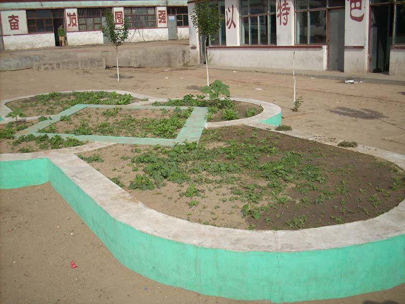 再向前走几步是几个大花坛。里面种了许多花,有步步高、喇叭花、猪尾花等等。只是现在它们还没有长大,只在三四厘米高,如果不是一个经验丰富的园丁,根本看不出是什么花。