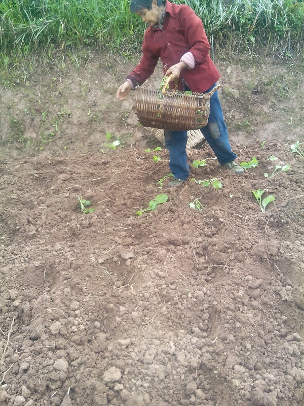 栽油菜首先要把油菜秧选好。我家的油菜秧种子早在一个月前就撒在了地里,如今已长出了绿油油的小菜秧。一片一片的绿铺在土地上,从远处看,真是美极了。选菜秧要选大的、根粗的,这样油菜才会更快的长大。不到一会儿,背篓就满是油菜秧了。