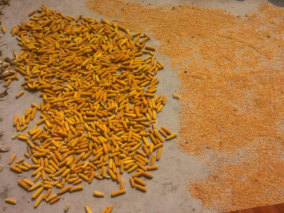 三、剥、晒 剥的多半是嫩玉米,先将肥美并且没有虫子的玉米粒挑选出来,磨碎,这样就可以做成玉米糊、玉米饼、玉米包子等食物。撕后的玉米直接扔在院坝里晒,快干的时候就用脱粒机脱粒,脱完之后散到坝子里晒干。