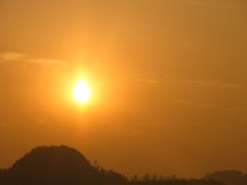 黄昏时刻,我总喜欢一个人站在山坡上,望着渐渐西沉的太阳。